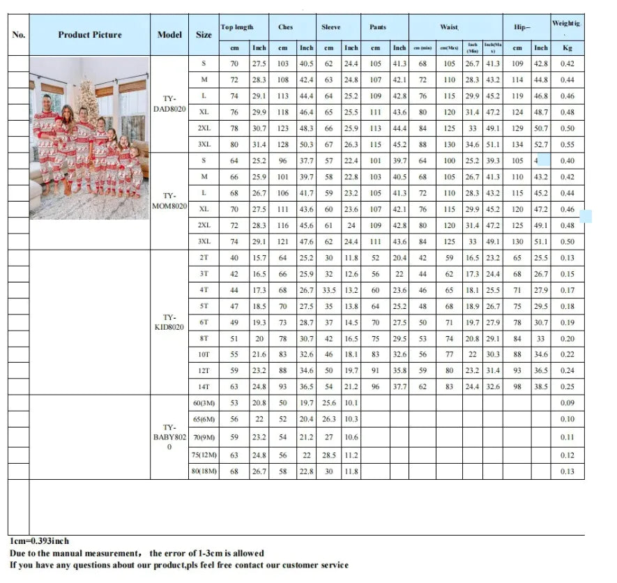 Cozy family matching pajama set featuring animal, stripe, and cartoon patterns. Made of a soft cotton blend (polyester), suitable for winter and autumn. Inclusive of sizes for men, women, children, babies, and even pets. Perfect for family gatherings or holiday photos. Available in "Picture Color" with options from baby 3M up to adult 3XL and pet sizes. Each set includes 1 pajama.