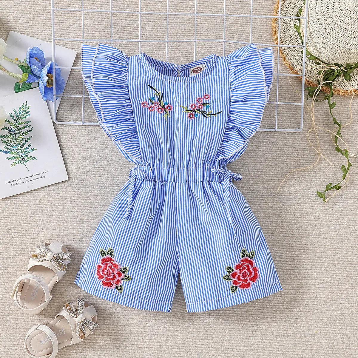Made from high-quality polyester, this bodysuit is both soft and durable, allowing for endless play and movement. The charming striped design is complemented by exquisite embroidery, adding a touch of elegance to everyday wear.